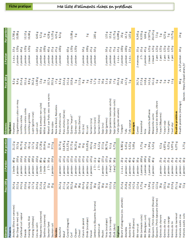 Fiche – Tableau des aliments riches en proteines (PDF)